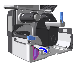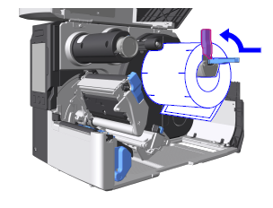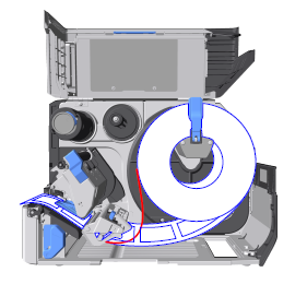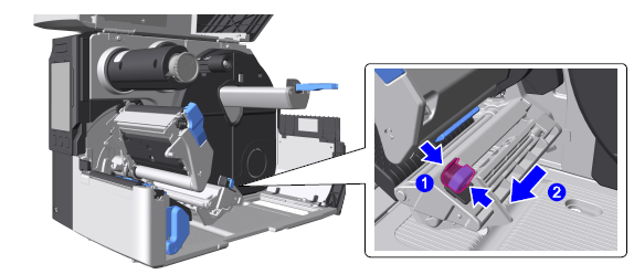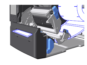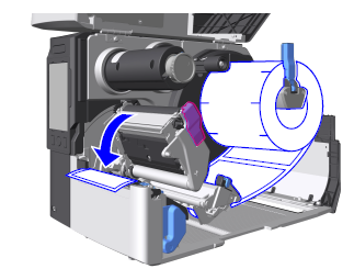 Pass the media under the label top sensor | Pull the media out until the tip of the The figure shows the cutter unit |