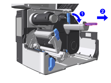 3. Lower the media roll holder guide and slide it to the tip of the media roll holder.