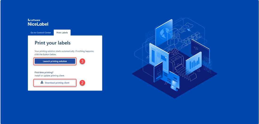 Se la finestra di dialogo non viene visualizzata, fare clic sul tasto [Avvia soluzione di stampa] nella pagina NiceLabel Web
