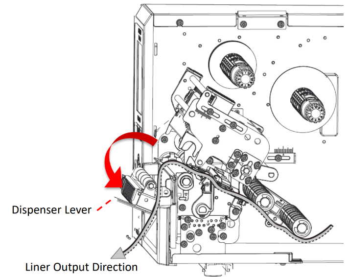 ⚫ La modalità Dispenser stacca il liner dall'etichetta durante la stampa. Dopo che l'etichetta è stata