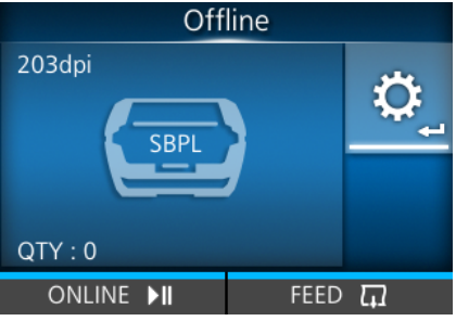 De printerresolutie wordt linksboven weergegeven in de Modus Online/Offline.