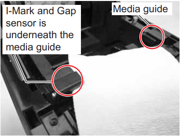 | 9. Zoek de Sensor I-Markering en de Sensor Opening op de linker Papiergeleider. | |