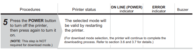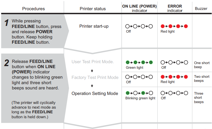 Wanneer de modus Standaardinstelling wordt geselecteerd en uitgevoerd in de modus Bedrijfsmodus, wordt de printer gereset naar de standaardinstelling (fabrieksinstelling) zoals hieronder vermeld.