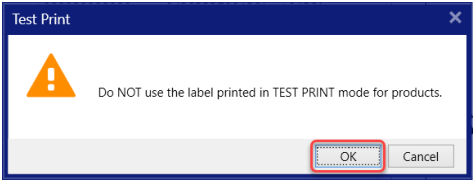 Er wordt een dialoogvenster Opgelet weergegeven om u eraan te herinneren dat u het testafdruklabel niet voor de eigenlijke toepassing