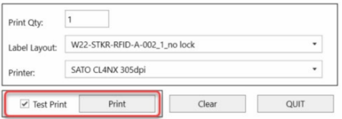Het label wordt afgedrukt zonder watermerk en de gegevens worden gecodeerd naar de RFID-tag.
