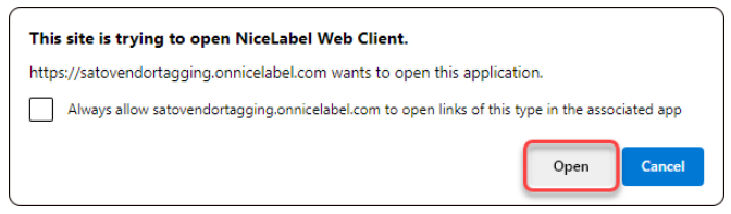 3. 3. Als u de NiceLabel Web client al heeft geïnstalleerd, dan verschijnt er een dialoogvenster wanneer