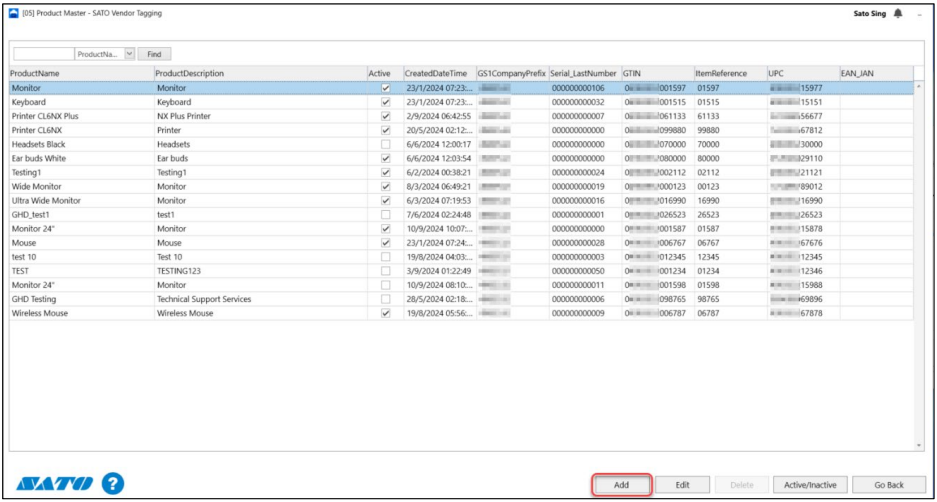 1. Klik op de knop [Toevoegen] onder aan het scherm [Product Master].