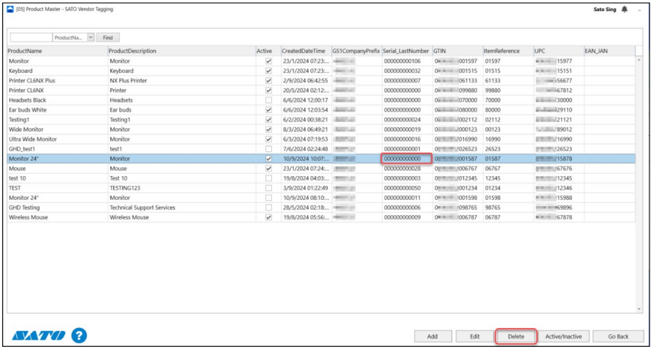 2. Klik op de knop [Verwijderen] onder aan het scherm [Product Master].