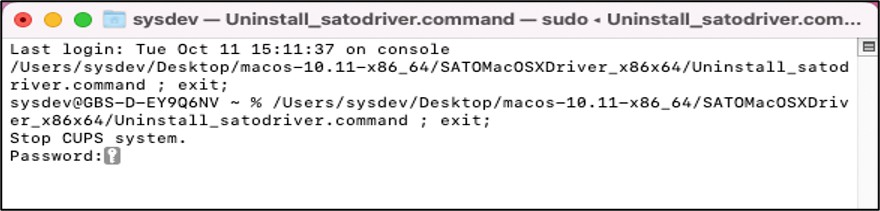Verwijder het CUPS-stuurprogramma voor de SATO-printer in Mac OS.