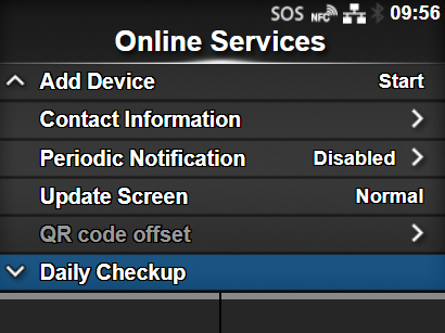 Hoe navigeer ik de SOS-update QR-code op de printers?