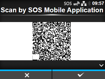 7. Open de mobiele telefoon SOS App - selecteer [SOS-update] - selecteer [Lees QR-code] - scan de QR-code die op het LCD-scherm van de printer wordt getoond.