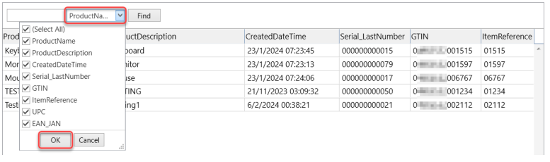 การค้นหารายการสินค้าในรายการ ผลิตภัณฑ์
