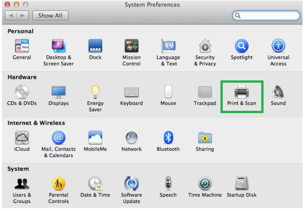 2) Trên Tùy chọn Hệ thống, nhấp vào in và Quét.